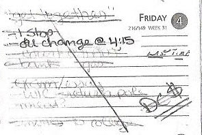 According to Melinda's check register for her day care payments: on 7/21/2006 Check #669 for $162; on 7/27/2006 check #672 for $50 "DC reinstated"; Then (the check posted in this article) #674 on 8/4/2006 for $162 "DC 3x". I also believe she paid cash for Trenton's daycare (I think it went up to $125 week because she was out of a job and her benefits stopped) I called the Eubanks to clarify. As soon as I have the info I will post it here.